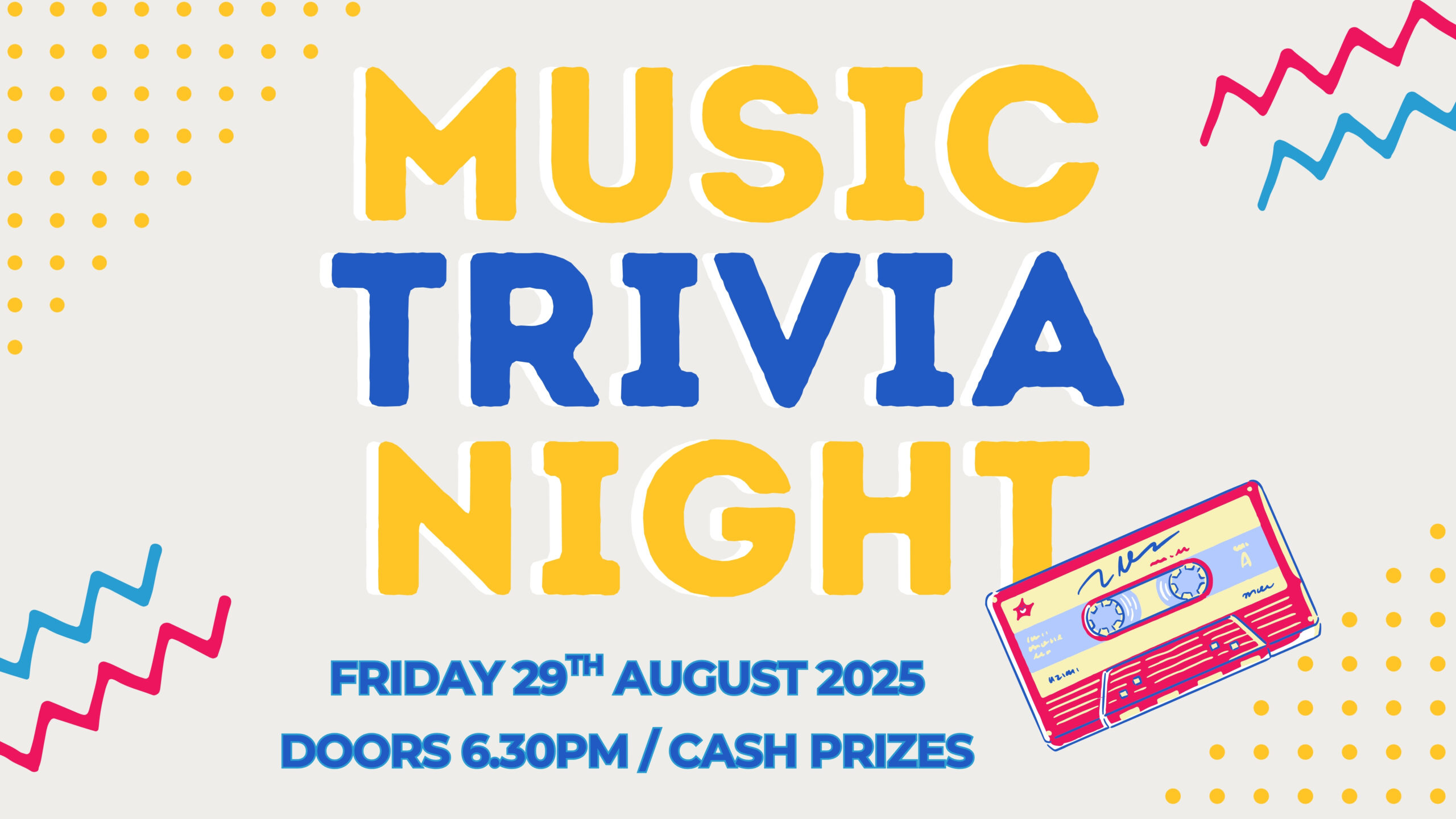 Join us – and the legendary MC Holly Scheaffe – for a night of music trivia spanning the 80s through to the 10s! We’re talking epic tunes, plenty of laughs, and some serious bragging rights. Come dressed as your favourite musician (we highly encourage it!) because there are CASH prizes not just for the trivia […]